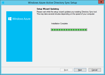 | For an upgrade, you’ll want to run this right away, since not doing so leaves you without a functioning DirSync server. | ![]() |