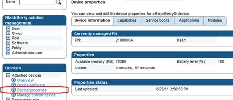 | 4. You can verify the device is properly connected by expanding the Devices menu tree on the left and selecting Device properties. | |