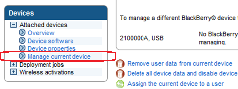 | 9. Expand the Devices menu tree on the left and select Manage current device. | |